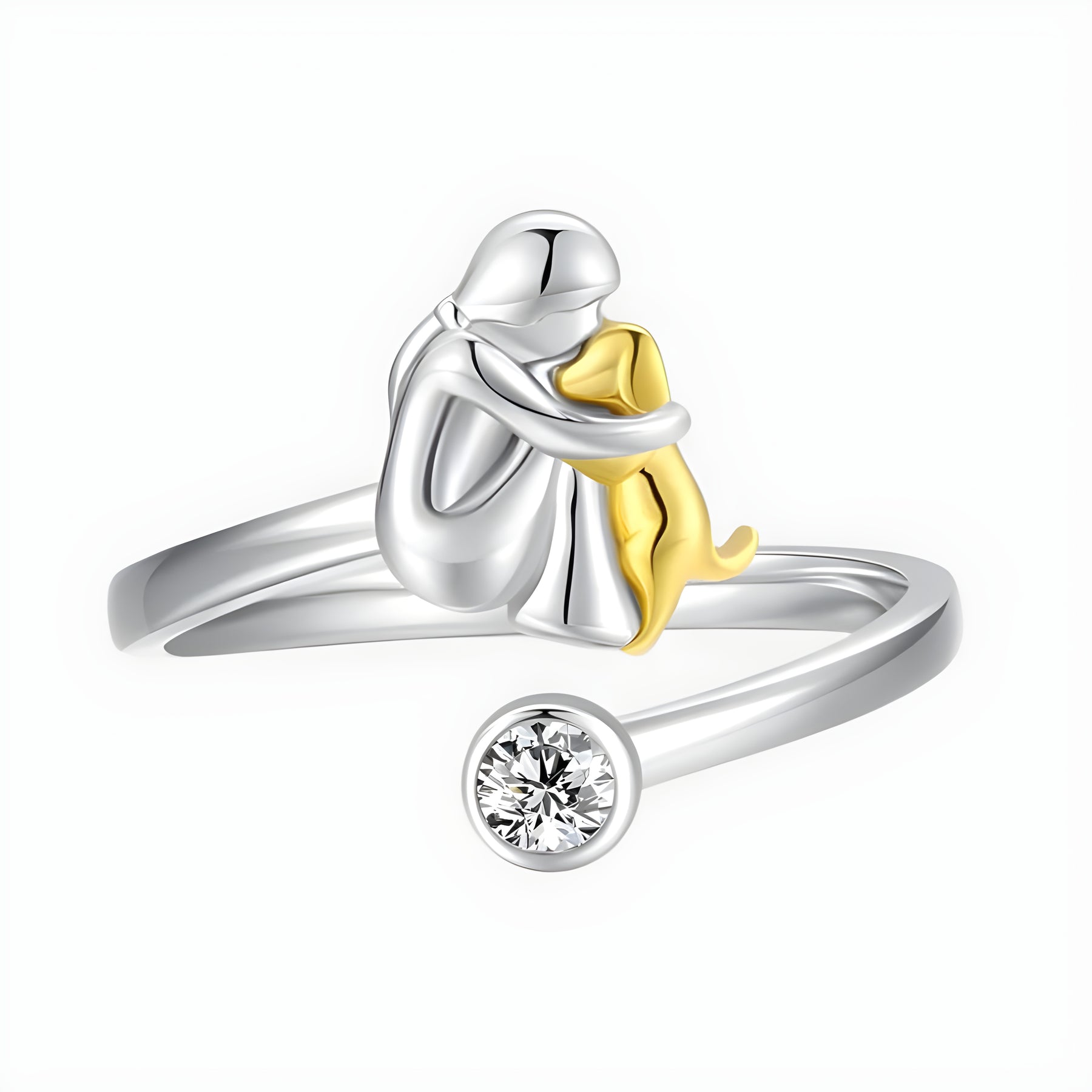 Bague Étreinte Canine Lumineuse en Argent Sterling