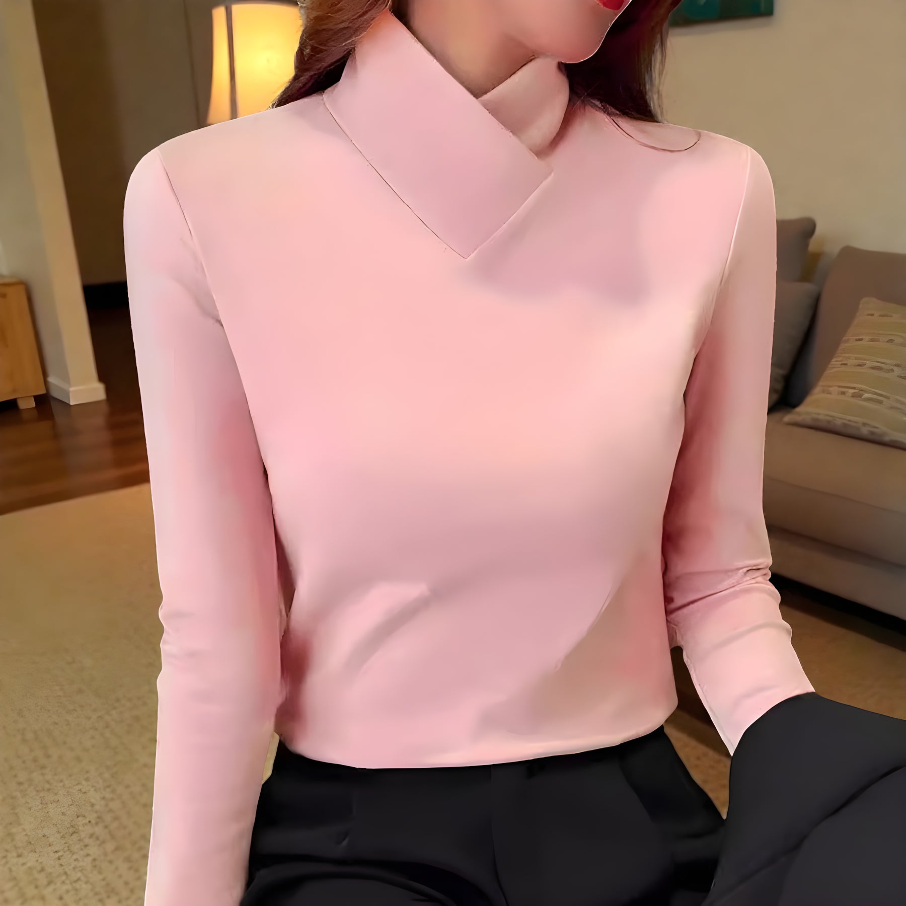 Le col roulé structuré et la silhouette épurée apportent une touche féminine discrète, toujours élégante.